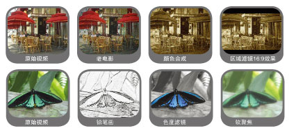●HD小旋風(fēng)提供數(shù)十種不同的實(shí)時(shí)視頻濾鏡,每個(gè)濾鏡都提供了操作簡(jiǎn)單卻功能強(qiáng)大的調(diào)節(jié)參數(shù)以便進(jìn)一步地控制視頻效果。