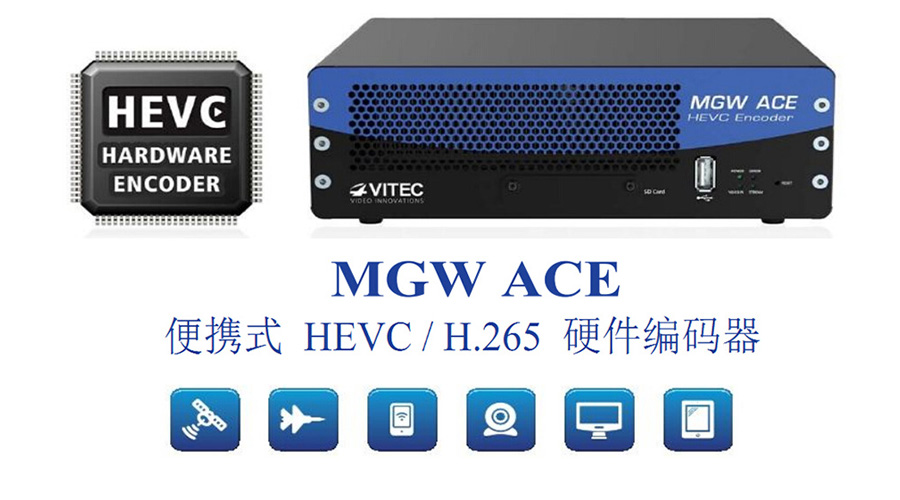 VITEC 最新推出MGW Ace便攜式編碼器,作為全球第一款HEVC / H.265 專用硬件編碼器,應用于專業級的流傳輸領域。用戶可通過MGW Ace先進的HEVC編碼功能來傳輸廣播級的視頻質量,分辨率最高到1080p,和目前的H.264壓縮標準相比,最多節省50%的帶寬。