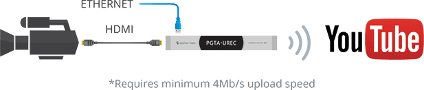 將任何HDMI視頻源以驚人的高清30 fps流式傳輸到YouTube,為您的YouTube訂閱者提供高品質的直播視頻。 非常的簡單,可靠,使用方便!