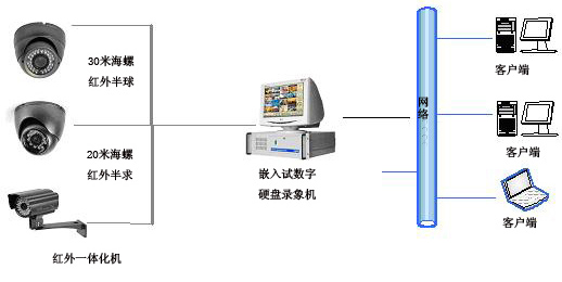 3. 監控中心通過一臺4路全實時嵌入式硬盤錄像機,實現集中存儲、監控、錄像等功能。