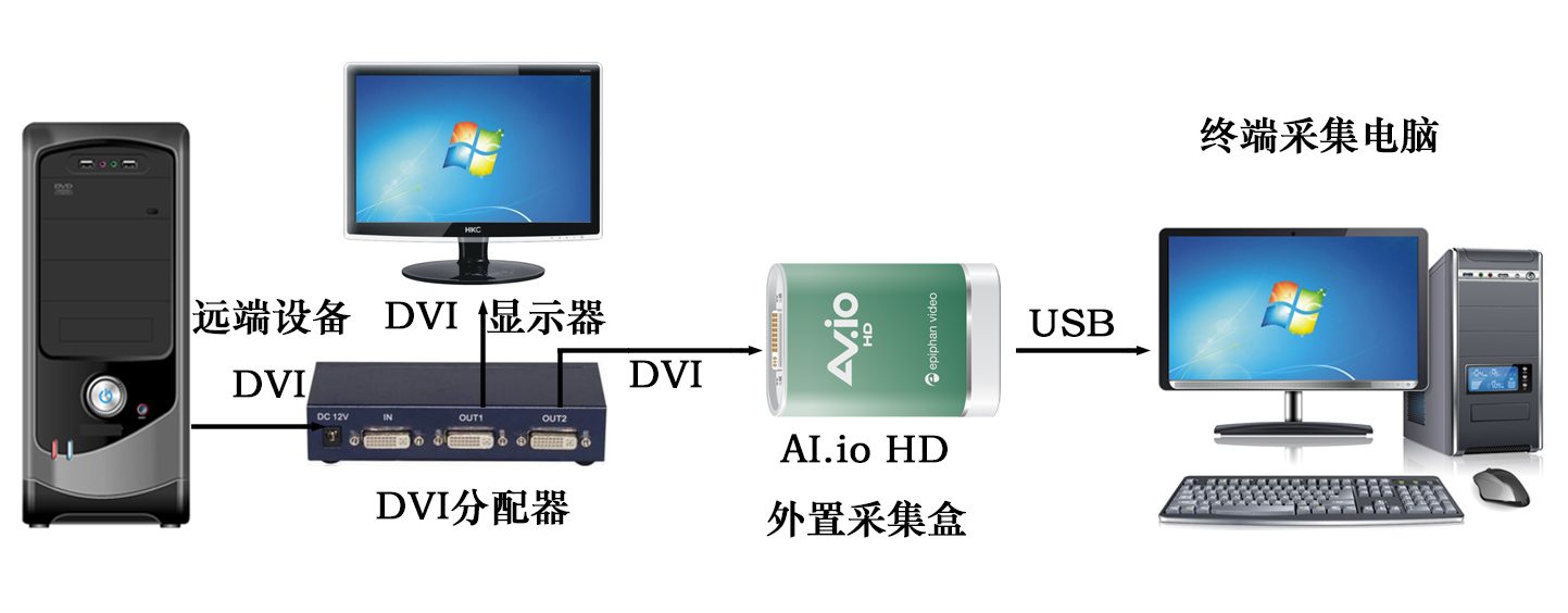 只需要將DVI 或HDMI和VGA轉接頭用線纜連接到設備接口上,再用USB線纜將 AV.io HD采集設備連接到您的電腦設備即可開始共享視頻。