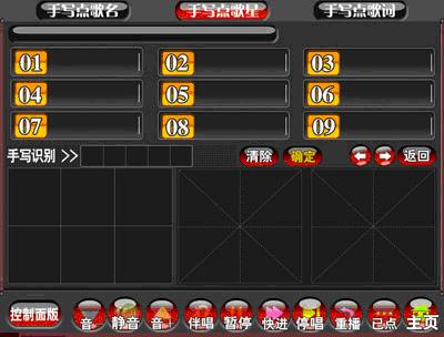 5、 所有點節目操作只需用一個遙控器完成,無需翻閱節目單,本系統提供多種分類檢索方式:按字數,語種、演員姓名或按歌曲序號進行點歌;方便、簡單、易用、易學符合人們以往的習慣;