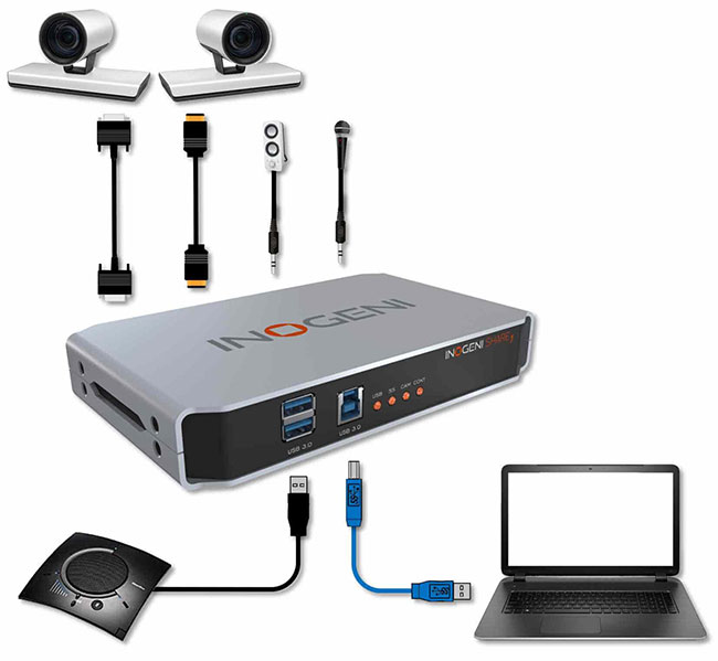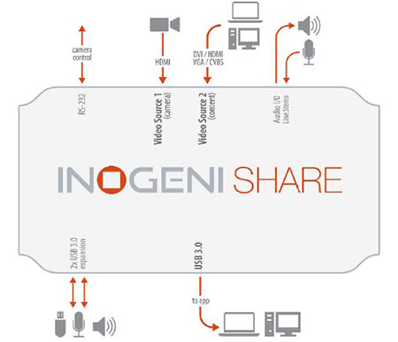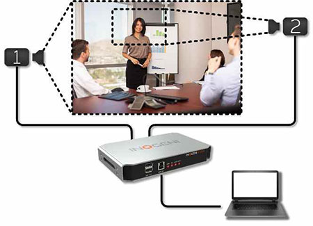 vMix?和Wirecast?應用程序可以同時管理兩個視頻源,如下所示。兩個視頻接口將顯示為“INOGENI 相機”和“INOGENI內容”.