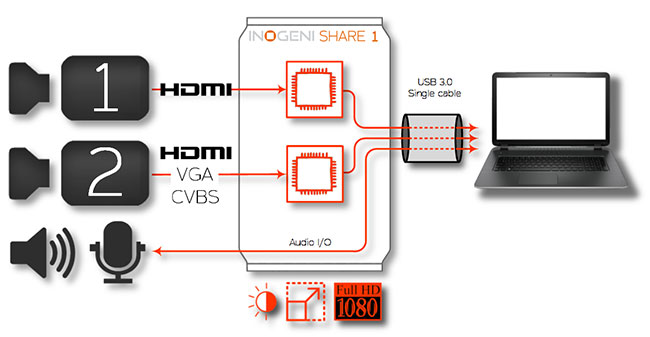 - 將兩個未壓縮高清視頻同時捕獲到一個USB 3.0連接中.
