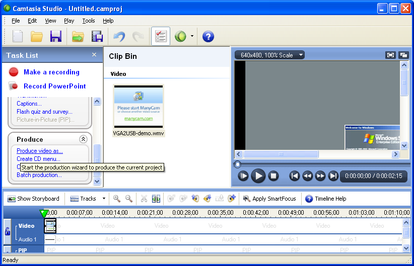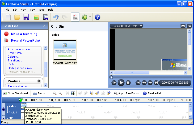 步驟1:連接VGA2USB / DVI2USB并運行Camtasia Studio軟件。