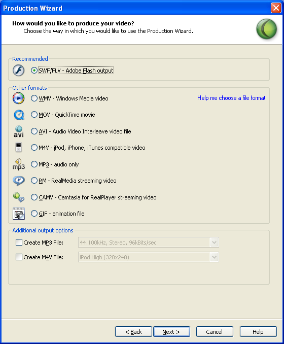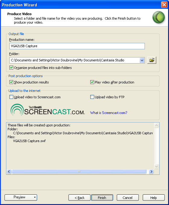 默認(rèn)情況下,你的視頻保存為兼容web回放的.SWF文件。如果你想另存為.FLV,可以通過選擇點擊“Flash選項…”按鈕操作。點擊“下一步”完成你的操作選項。