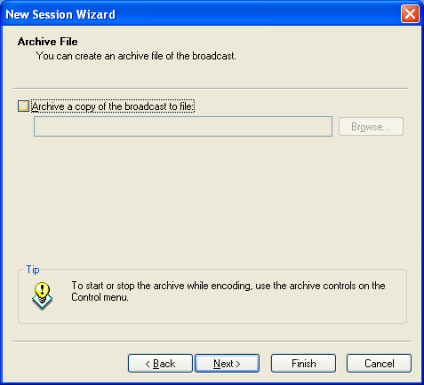選擇“Next”,直到提示選擇創建一個歸檔文件。