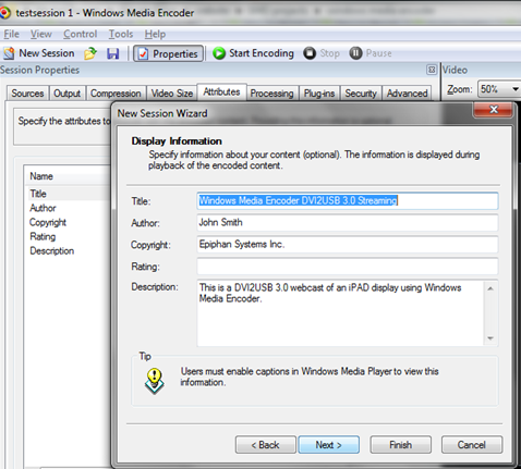 步驟1: 連接Epiphan抓幀器設備并啟動Windows Media Encoder。