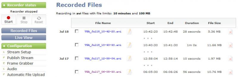 Files”記錄文件按鈕。指定文件類型、時間和大小限制?,F在單擊“Start”開始?,F在Lecture Recorder