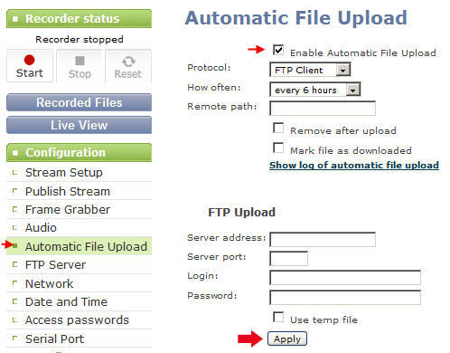 您可以配置系統自動上傳記錄到服務器。Lecture Recorder