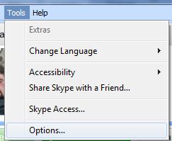 1.確保你的Epiphan設備連接并加電,打開Skype。選擇Tools工具>Options選項。
