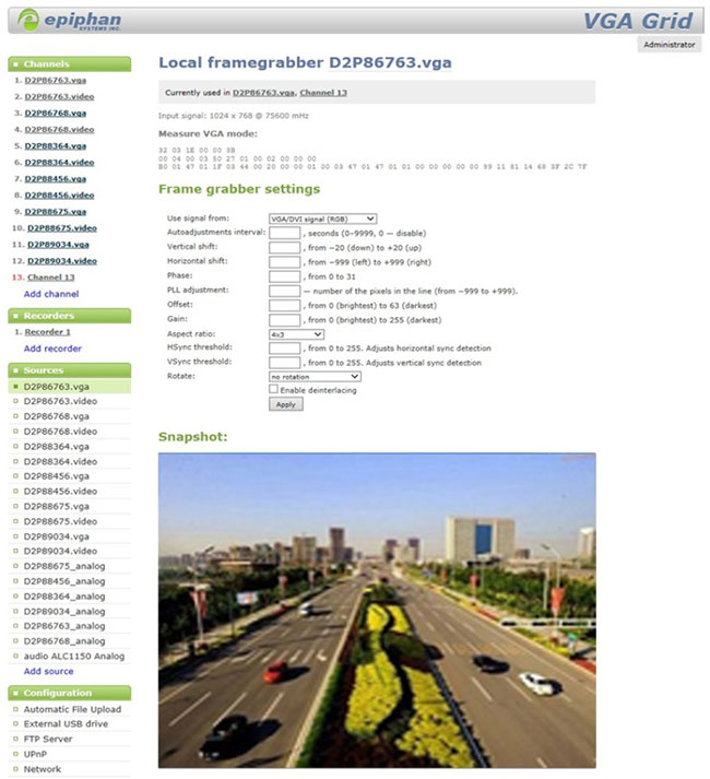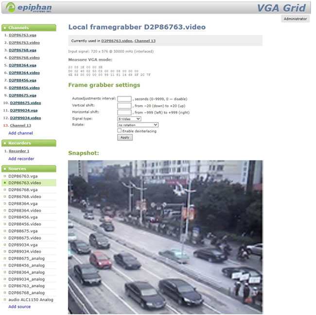 若知道Grid的IP地址,可用IE瀏覽器輸入例如:“http://192.168.1.100/admin”,登陸用戶名為“admin”,密碼為空;若不知IP地址則可用Epiphan