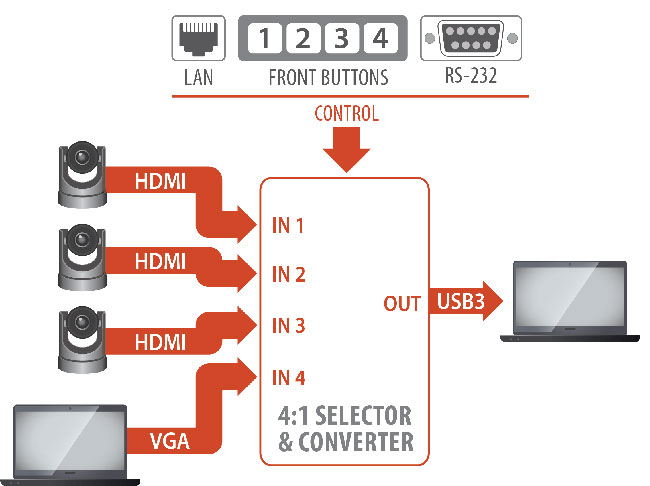 使用Inogeni CAM系列的多路攝像機選擇器,您的會議可以像您想要的一樣。 CAM產(chǎn)品可讓您從按鈕或遠程中選擇四個來源之一。使用SHARE2,您可以呈現(xiàn)和敘述PowerPoint程序,切換一個揚聲器和一個組的圖像之間,將一個攝像頭集中在面試官和受訪者上,呈現(xiàn)并解釋電子表格或數(shù)字化的X光片等。通過實踐,您可以使一個相機全屏,并更改其他相機或光源正在關(guān)閉的屏幕上。