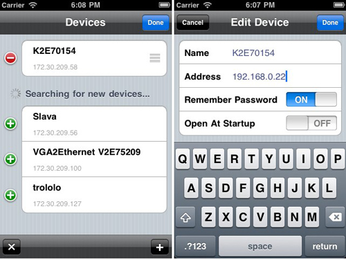 該應用程序的工作原理是通過WiFi連接和自動檢測與您的iDevice同一子網VGA2Ethernet設備。