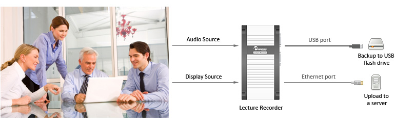通過Polycom視頻系統的集成,您可以使用多個攝像頭、顯示器和投影儀創建和自定義會議解決方案。如果您需要記錄的事件是會議或演講,那么請同時使用Epiphan Lecture Recorder與Polycom系統。將Lecture Recorder連接至VGA或DVI以及會議系統的音頻輸出,然后通過以太網保存分辨率高達1920×1080的會議視頻。此解決方案可兼容高清1080p30。