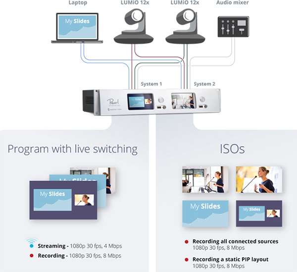 除了提供流媒體和錄音的完全安全性,此設置還有一些隱藏的功能。您可以通過創建錄制程序的自動副本到USB驅動器來顯示表演者的準備情況,因此您可以在完成后立即向演講者發送視頻文件。更好的是,如果您不需要Pearl / Pearl-2上的備份布局,您可以將其切換到包含所有來源的可信監控通道,并將其顯示在大屏幕上。